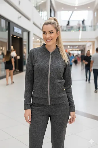 JAQUETA DE JACARD COM BOLSOS E ZIPER TRATORADO